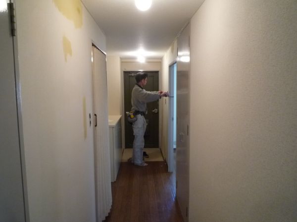 アパートの空家修繕でビニルクロス張替えを行っています。