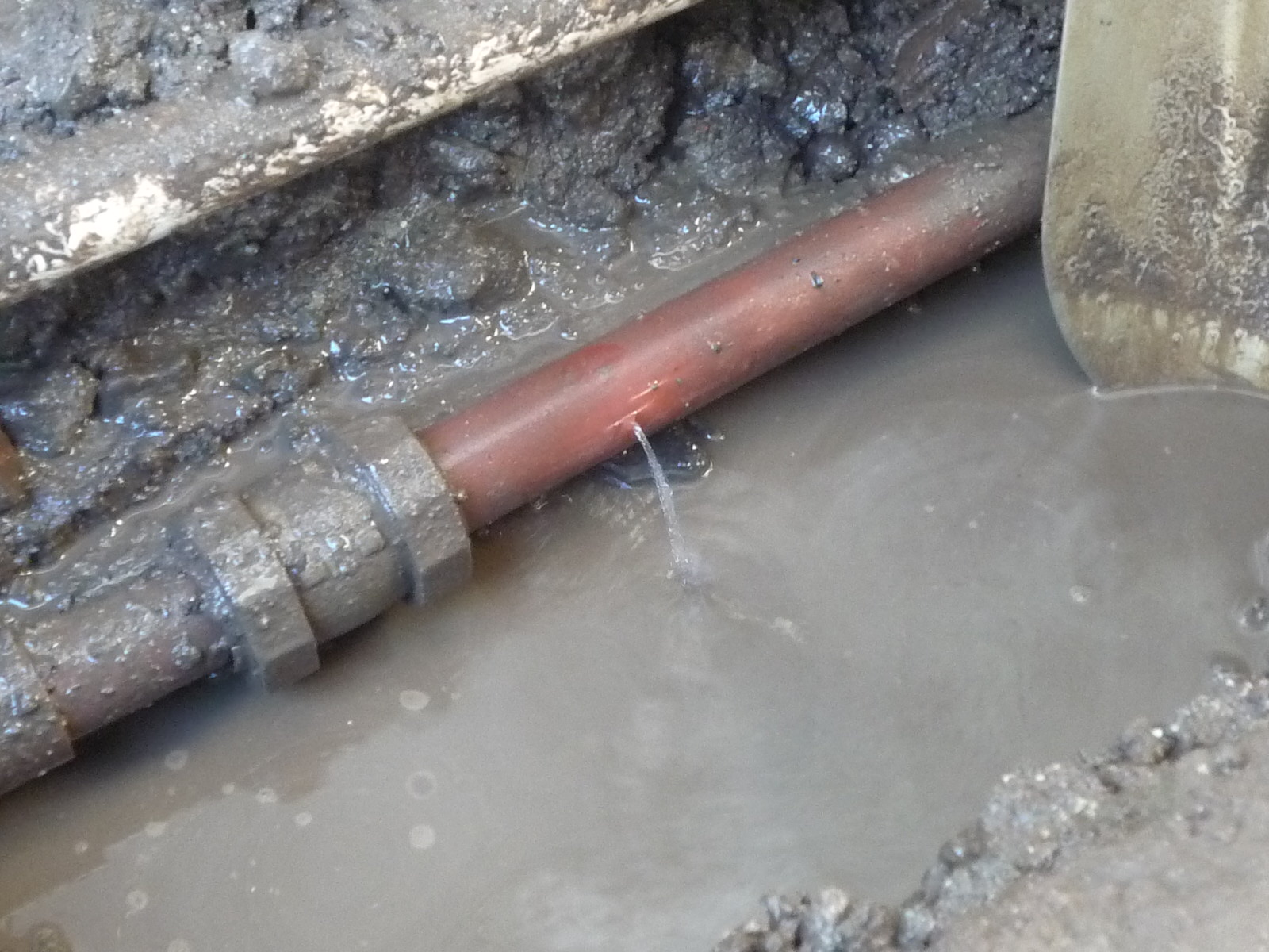 埋設の給湯配管の漏水があり、緊急対応で修繕作業を行いました。