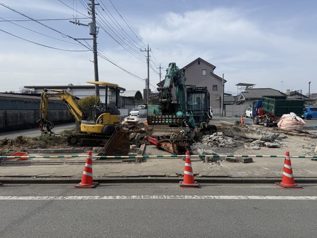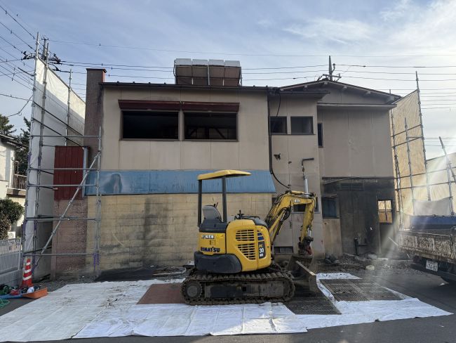 2026/03/03 甲府市内にて、住宅の解体工事を行いました。作業にあたっては近隣への配慮や安全対策を施し、重機にて建物を順次解体していきます。解体後は敷地を整地し、次の活用へとつながる状態に整えています。