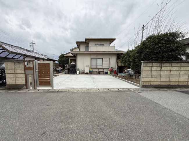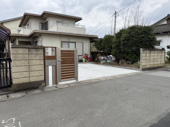 甲府市内の住宅にて外構リフォーム工事を行いました。複数台が駐車できるスペースを作るために塀を取り壊して門まわりを見直しました。主張する材料は採用せずにすっきりとしたデザインに仕上げることで、住宅との調和も意識しました。