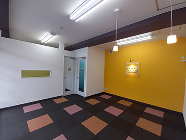 カラフルにデザインされた空間がとても居心地が良く、マンツーマン指導を行う塾ということでパーテーションで区画されたブースが備わっています。